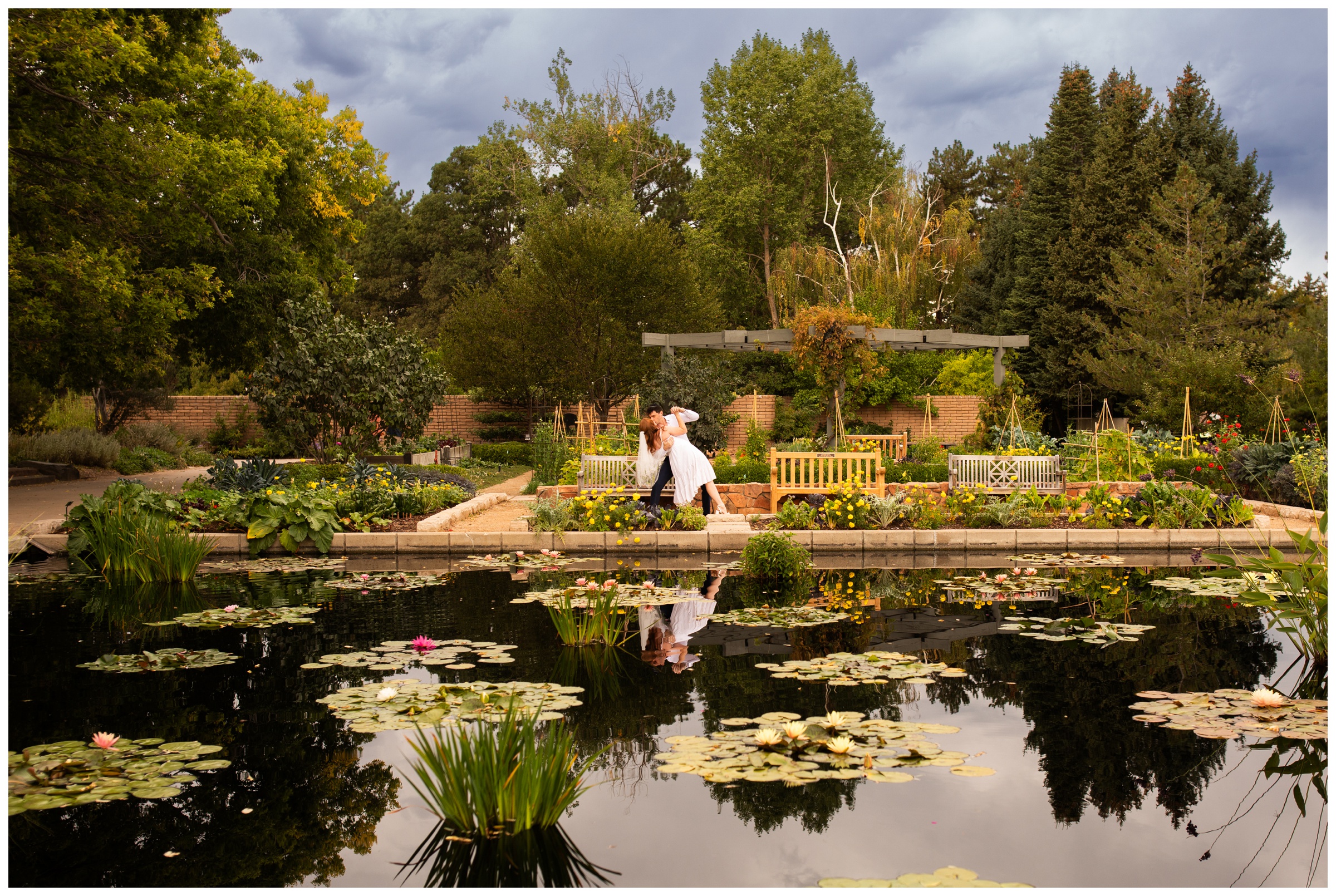 During the spring I photographed Jacob’s surprise proposal to Katie at the St. Julien in Boulder. Followed by a surprise engagement party as well. Both turned out beautifully and it was such a pleasure to work with these two. When Jacob reached out again, planning a super intimate September elopement, I was thrilled! It was just the two of them and myself for this Denver Botanic Gardens wedding. They signed their marriage license, shared some sweet words, and we got a ton of great photos all around the gardens. The Denver Botanic Gardens is one of Katie’s very favorite places, so it was the perfect spot for their last minute elopement. The gardens were so lush and gorgeous! They even embraced the dramatic weather at the end and danced and kissed in the rain. So memorable! We were drenched, but it was so worth it.